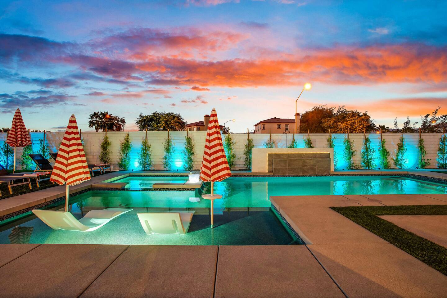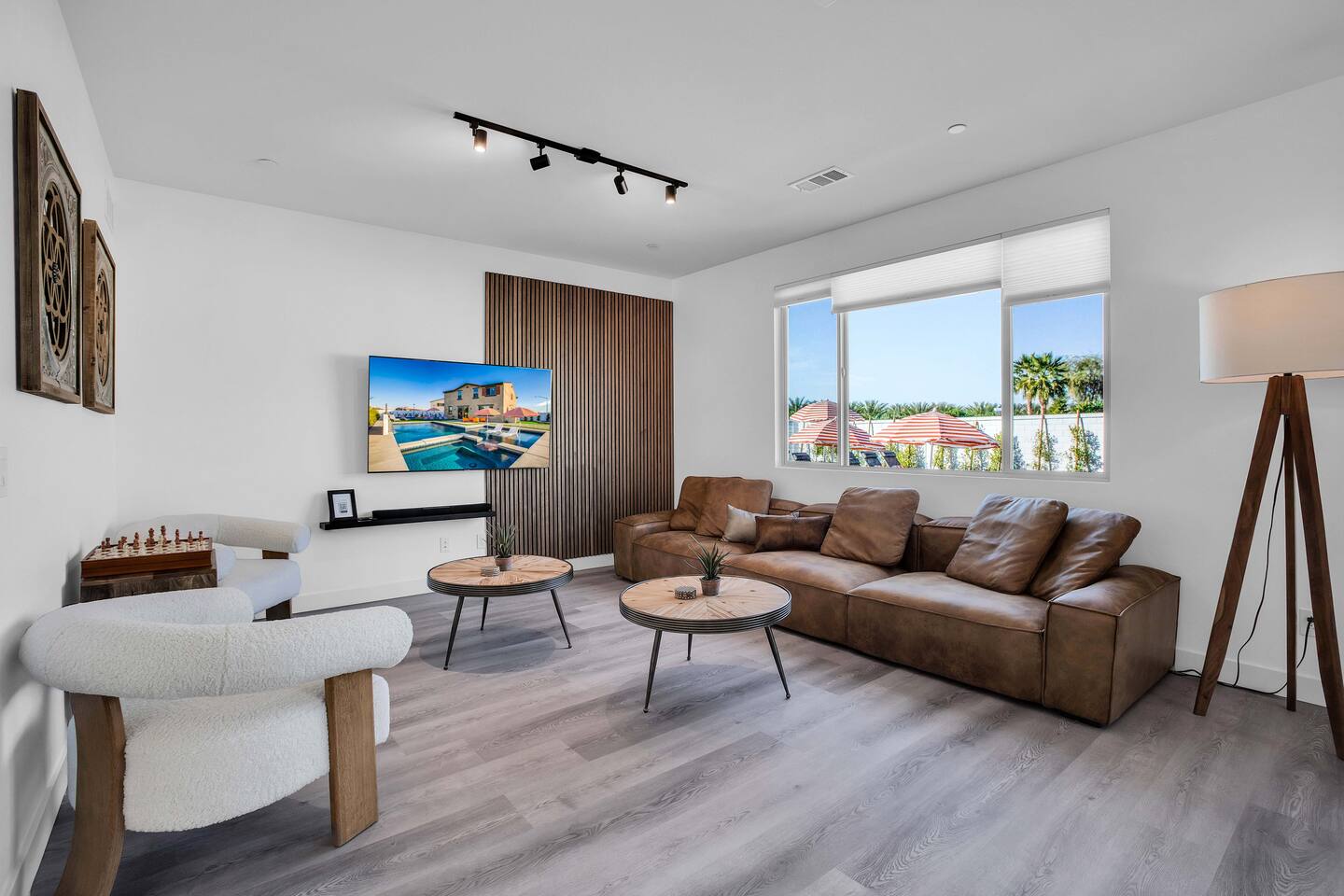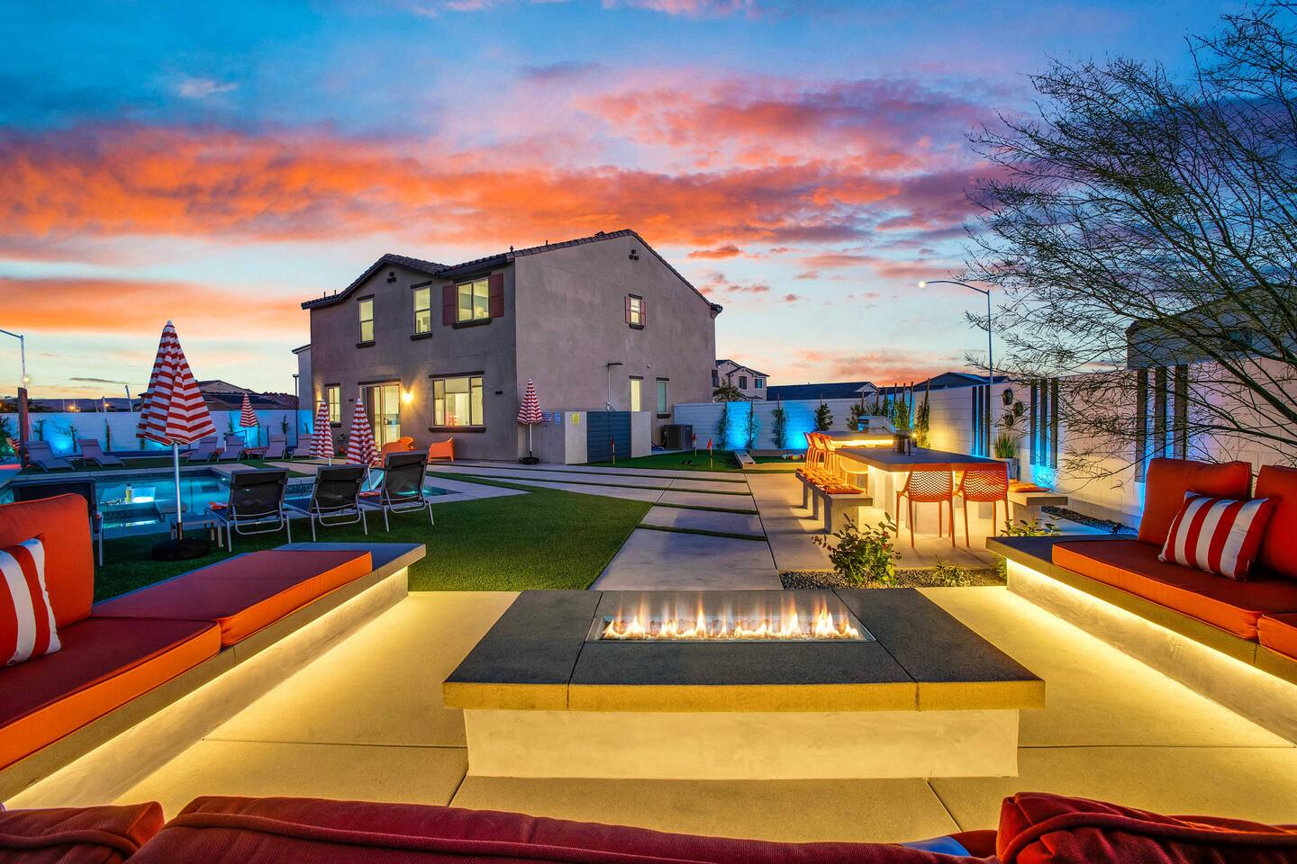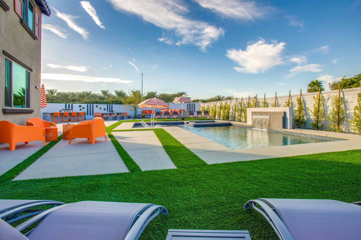 🏖️ Resort Style Pool: sip on cocktails at the in-water bar, relax on the tanning baja ledge, and soak in the spa jacuzzi near the waterfalls. Perfect for lazy afternoons, sunset swims, or nighttime dips. You'll never want to get out. ⛳ Backyard Fun: get competitive with friends & laugh it out playing mini golf, pickleball, and basketball... even a funny game of human-sized billiards! 🧖♀️ Backyard Chill: fire up the grill for a poolside BBQ or relax by the firepit lounge under the desert stars (perfect for group gossips & deep talks). 🛏️ Bedrooms & Baths: With 7 bedrooms & 11 beds that sleep 18, everyone in your group will feel luxury hotel-level comfort. Plush beds, fresh linens, and fully stocked bathrooms. 🕹️ Endless Entertainment: smart TVs, high-speed Wi-Fi throughout, and a game-ready arcade. Yes, an arcade, you read that right! 🍳 Fully Stocked Kitchen: complete with all the essentials — coffee maker, toaster, blender, and plenty of cookware. 🚗 Parking: 3 driveway spots & additional street parking. EV charging available too! 🐾 Pet-Friendly: your furry friends deserve a vacation too. * Please get in touch with us to get approval for your pets. There is a $150 pet fee. * Pool Heating: Available for $150/night for the full stay. Spa heating is complimentary. Bookings fill fast during events & high seasons — secure your dates now for a group getaway at this luxury Coachella vacation home!