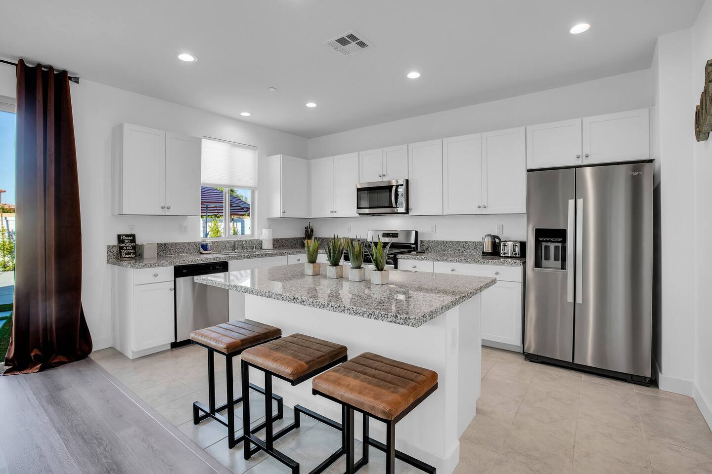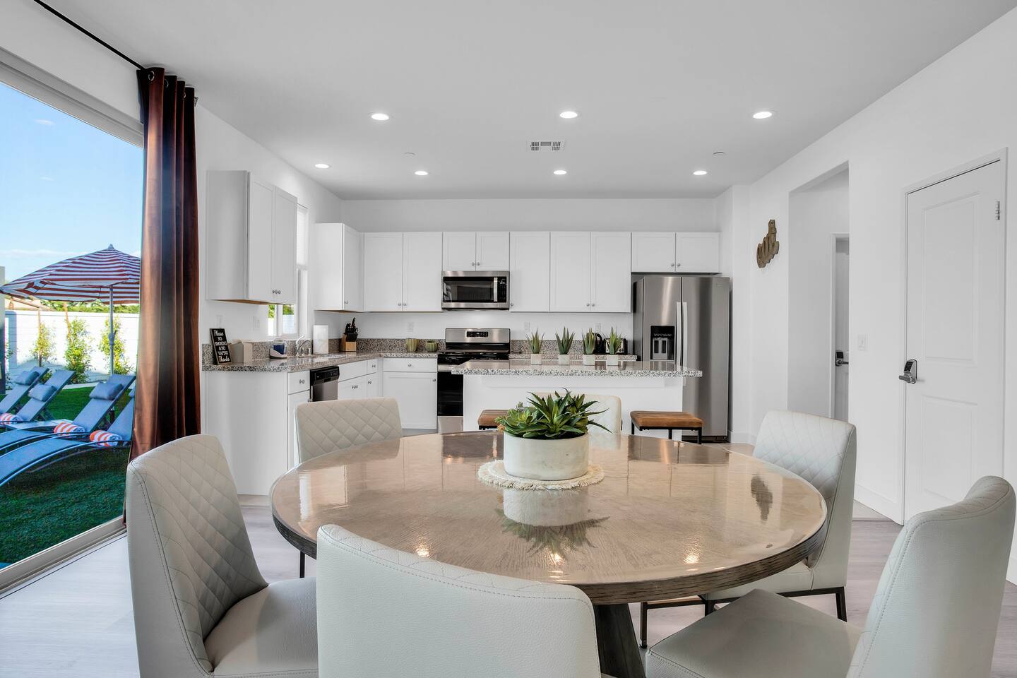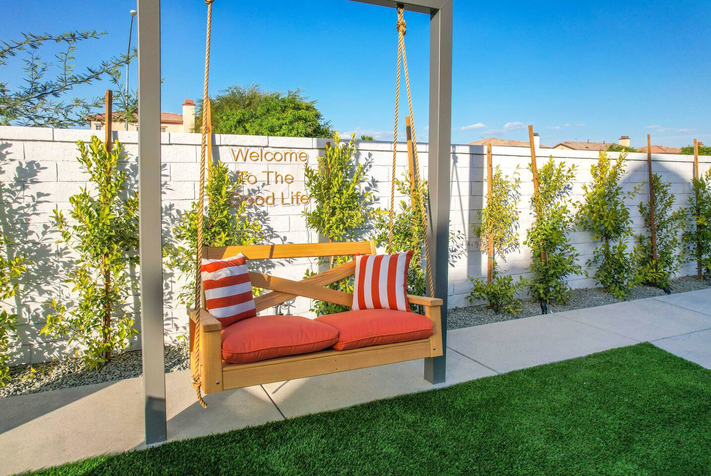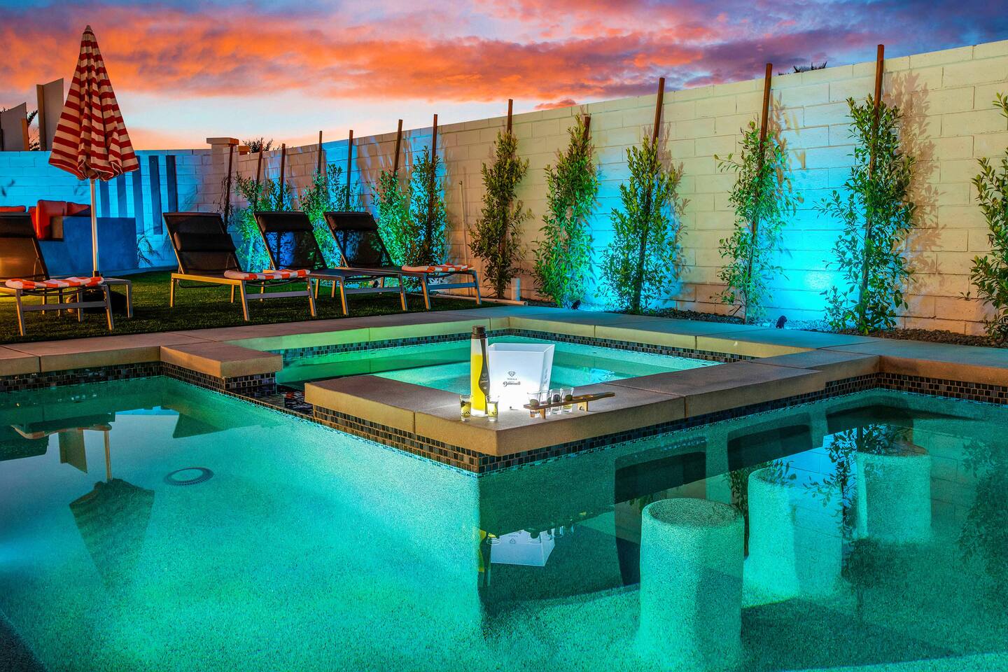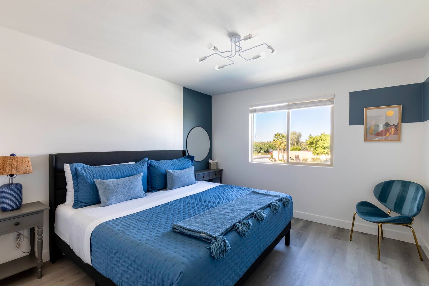 🏖️ Resort Style Pool: sip on cocktails at the in-water bar, relax on the tanning baja ledge, and soak in the spa jacuzzi near the waterfalls. Perfect for lazy afternoons, sunset swims, or nighttime dips. You'll never want to get out. ⛳ Backyard Fun: get competitive with friends & laugh it out playing mini golf, pickleball, and basketball... even a funny game of human-sized billiards! 🧖♀️ Backyard Chill: fire up the grill for a poolside BBQ or relax by the firepit lounge under the desert stars (perfect for group gossips & deep talks). 🛏️ Bedrooms & Baths: With 7 bedrooms & 11 beds that sleep 18, everyone in your group will feel luxury hotel-level comfort. Plush beds, fresh linens, and fully stocked bathrooms. 🕹️ Endless Entertainment: smart TVs, high-speed Wi-Fi throughout, and a game-ready arcade. Yes, an arcade, you read that right! 🍳 Fully Stocked Kitchen: complete with all the essentials — coffee maker, toaster, blender, and plenty of cookware. 🚗 Parking: 3 driveway spots & additional street parking. EV charging available too! 🐾 Pet-Friendly: your furry friends deserve a vacation too. * Please get in touch with us to get approval for your pets. There is a $150 pet fee. * Pool Heating: Available for $150/night for the full stay. Spa heating is complimentary. Bookings fill fast during events & high seasons — secure your dates now for a group getaway at this luxury Coachella vacation home!